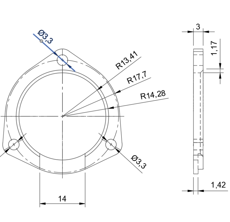 Algemeintoleranz bei zur Verfügung gestellten 3D Modele sowie Bemaßte Flächen aus Skizze: +-0,5 mm