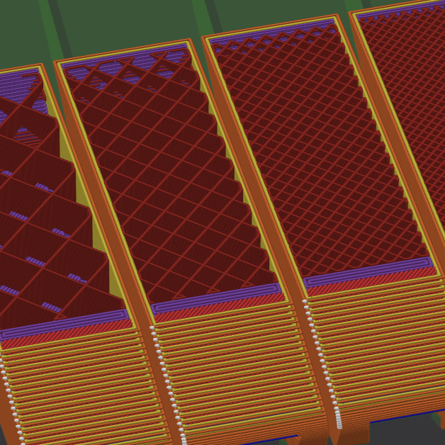Die Füllung (Infill) eines dreidimensionalen Objektes erfüllt gleich mehrere Zwecke. Einerseits füllt eine interne Struktur den leeren Raum innerhalb des Objekts, andererseits kann somit auch das Gewicht geändert werden so wie die Stabilität einer Objektes.